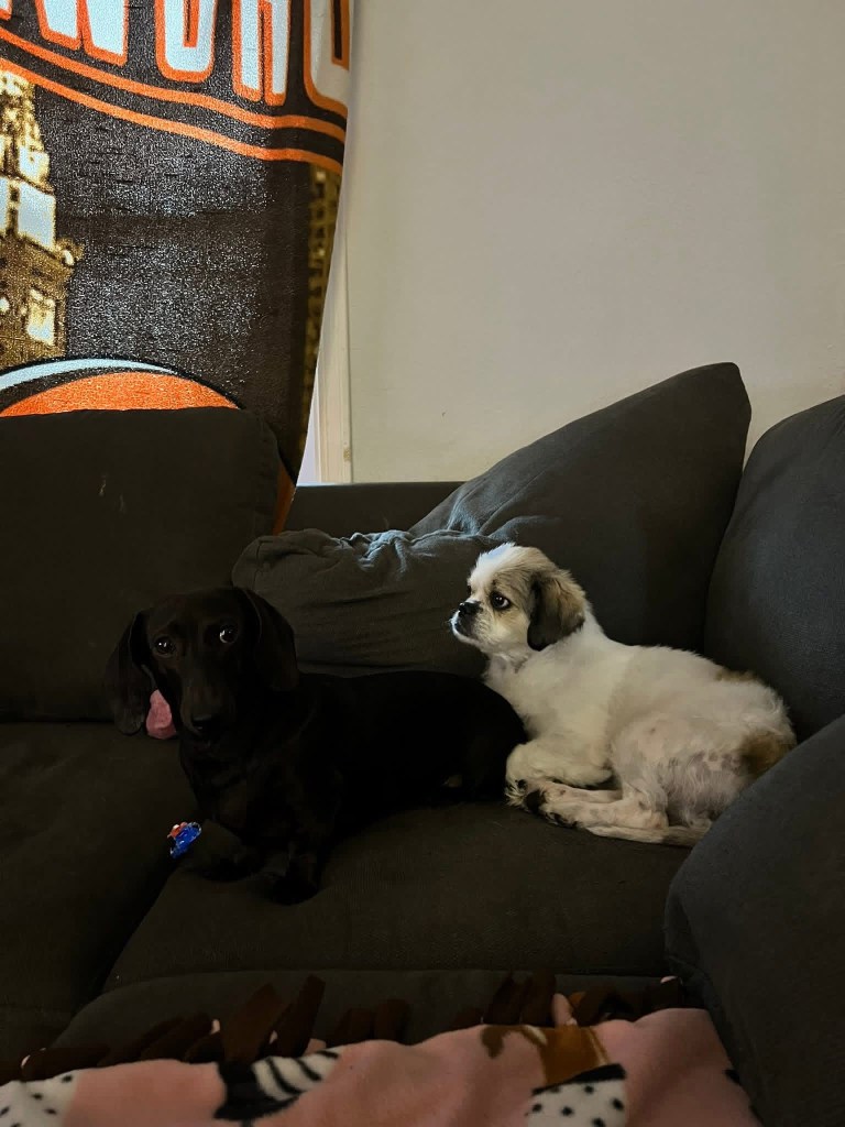 This precious girl was rescued from a puppy mill and is now learning what it means to feel safe and loved. She is shy at first, but incredibly gentle and kind. Once she trusts you, she shows her affection in the sweetest ways—snuggling close, resting her head on you, and soaking up every bit of love you offer.